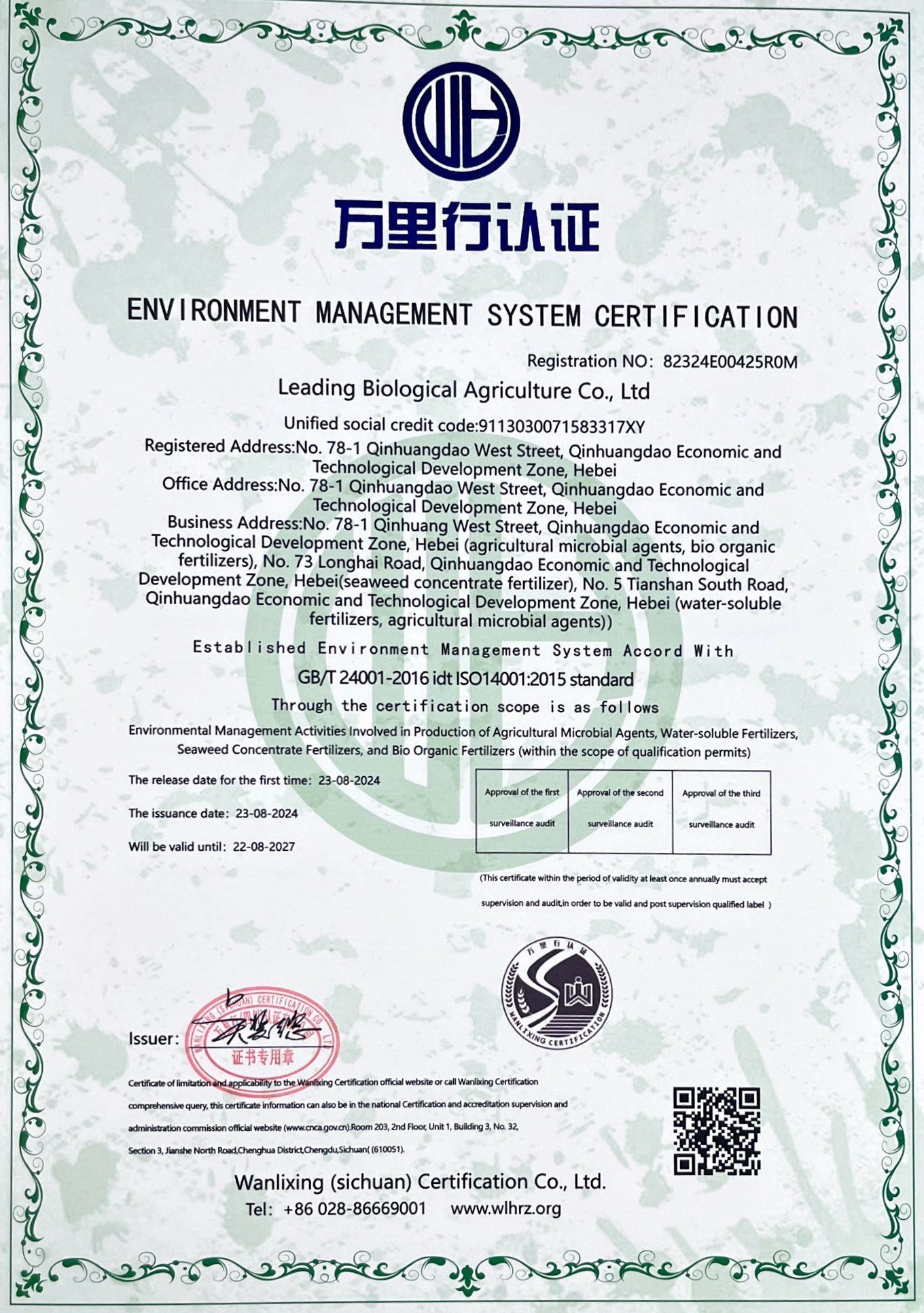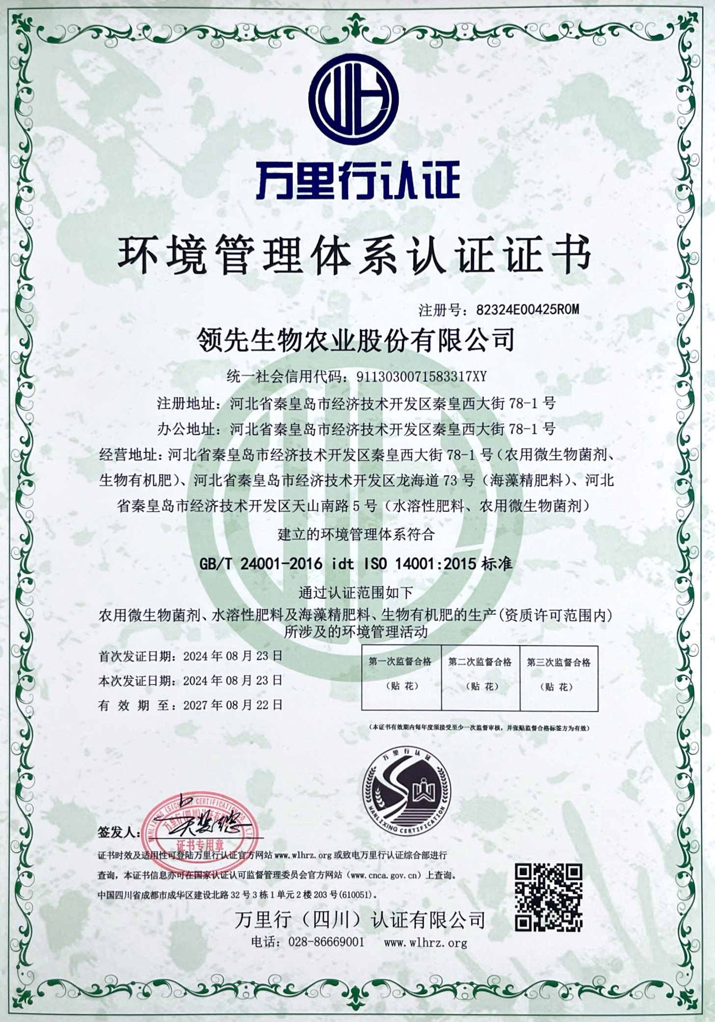 质量治理系统认证证书