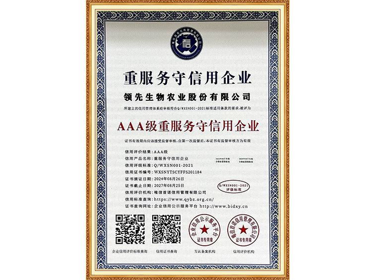 AAA级重效劳守信用企业